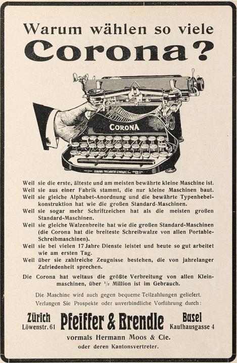 Werbeanzeige für Schreibmaschine Corona monochrom