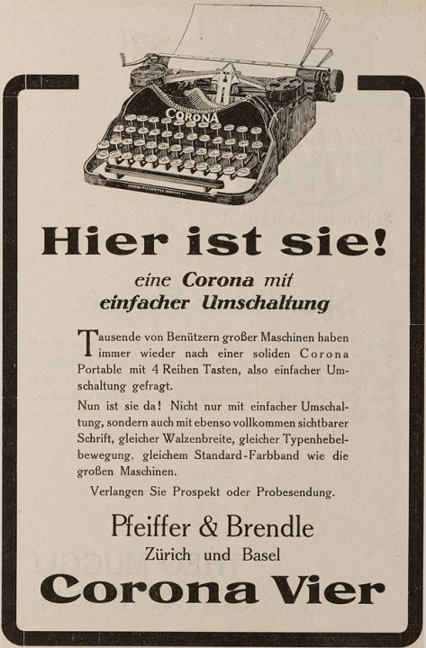 Werbeanzeige für Schreibmaschine Corona monochrom