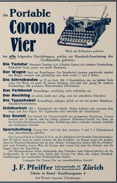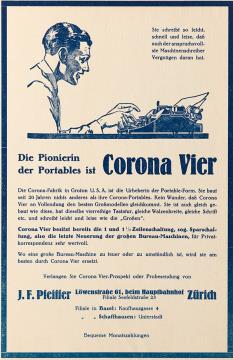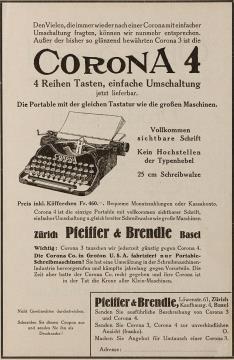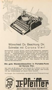 Werbeanzeige für Schreibmaschine Corona monochrom