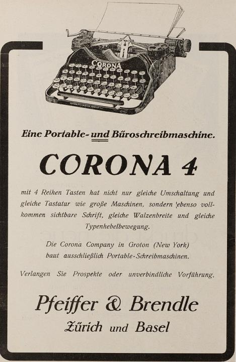 Werbeanzeige für Schreibmaschine Corona monochrom