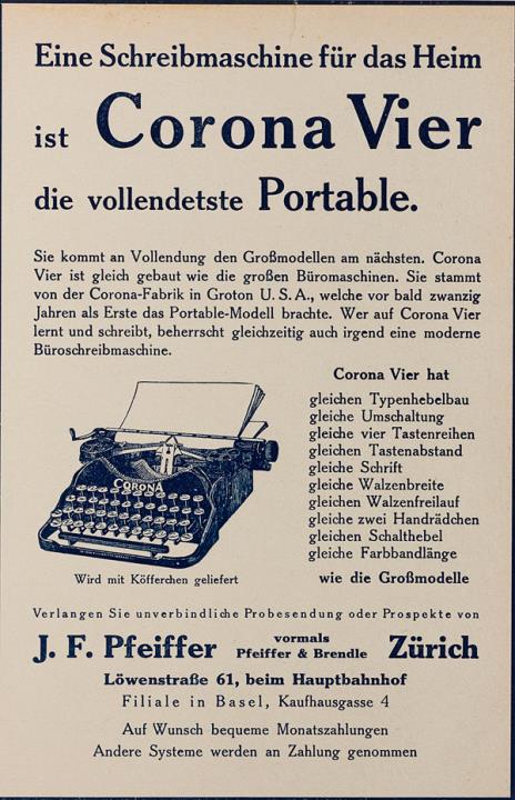 Eine Schreibmaschine für das Heim ist Corona Vier