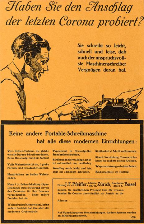 Werbeanzeige für Schreibmaschine Corona monochrom