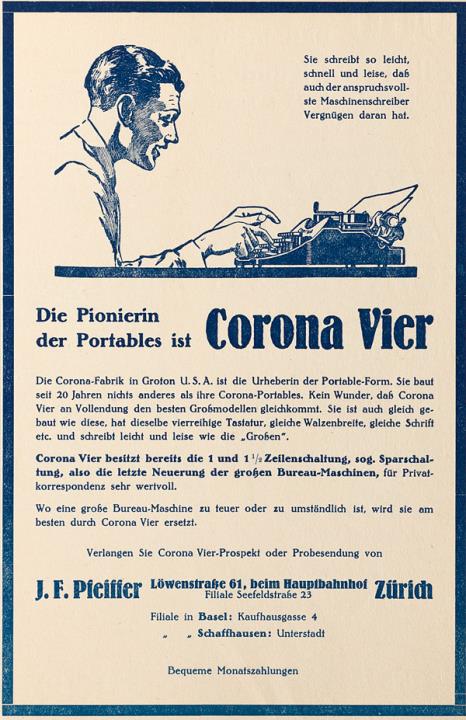 Werbeanzeige für Schreibmaschine Corona monochrom