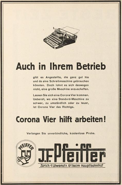 Werbeanzeige für Schreibmaschine Corona monochrom