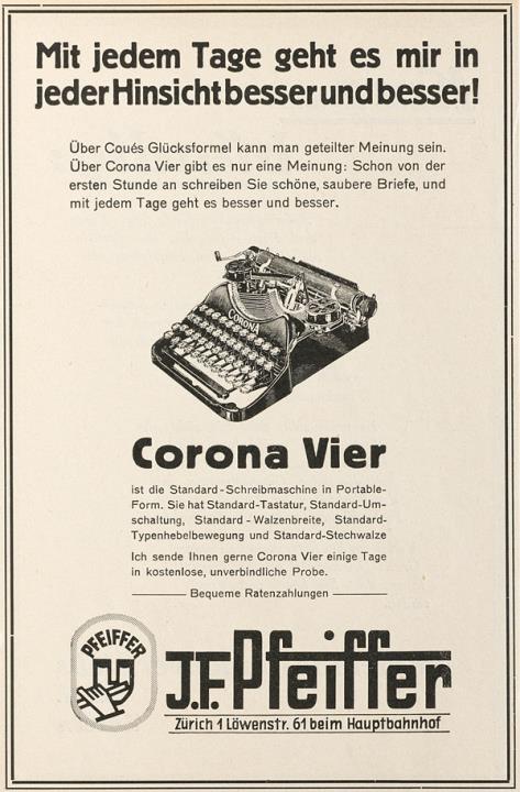 Werbeanzeige für Schreibmaschine Corona monochrom