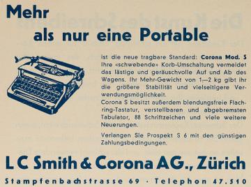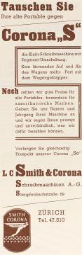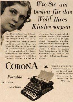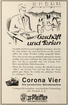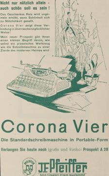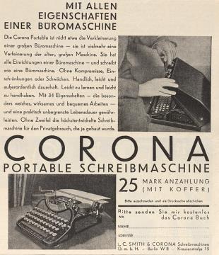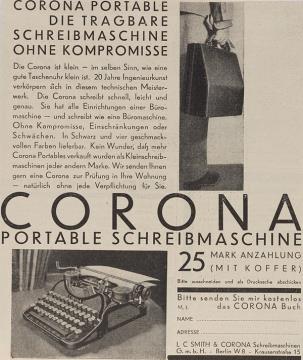 Werbeanzeige für Schreibmaschine Corona monochrom