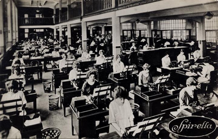 Büro, Schreibmaschine, Sekretärin, Frau, Büroorganisation, Arbeit, Arbeitsbedingungen, Unternehmen, Kleidung, Mode
