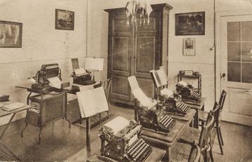 Next to literature on the history of technology, of the typewriter and the office, the Archive holds patent letters, textbooks and instruction manuals as well as historical postcards, letters, photographs and various kinds of advertising (leaflets and brochures, advertising stamps, newspaper ads, posters and signs, promotional gifts).