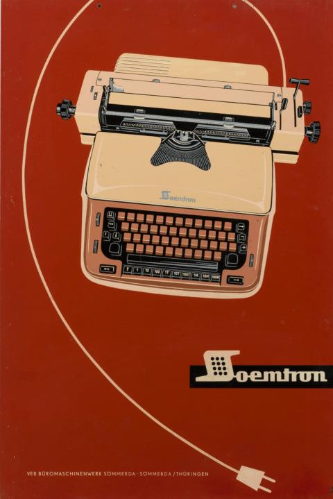 Werbeschild für Schreibmaschine Soemtron auf Kunststoffplatte gedruckt