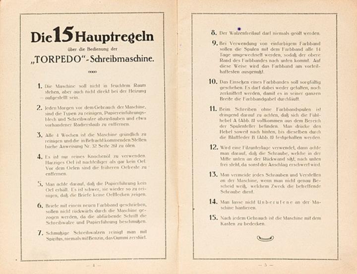 Bedienungsanleitung für Schreibmaschine Torpedo Nr. 5c.44.1005.3.22.5000.