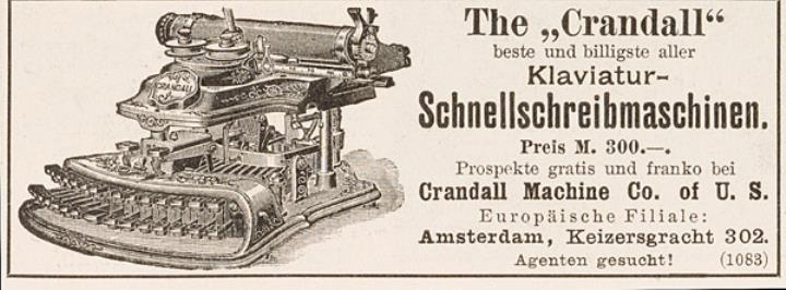 Werbeanzeige für Schreibmaschine Crandall monochrom, drei Exemplare