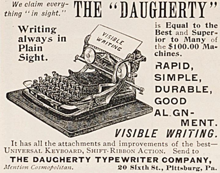 Werbeanzeige für Schreibmaschine Daugherty monochrom