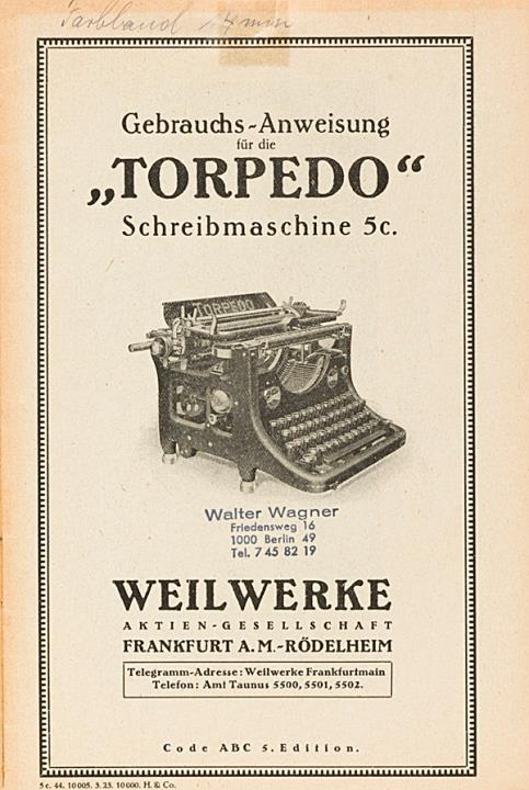 Bedienungsanleitung für Schreibmaschine Torpedo Nr. 5c.44.1005.3.23.10000