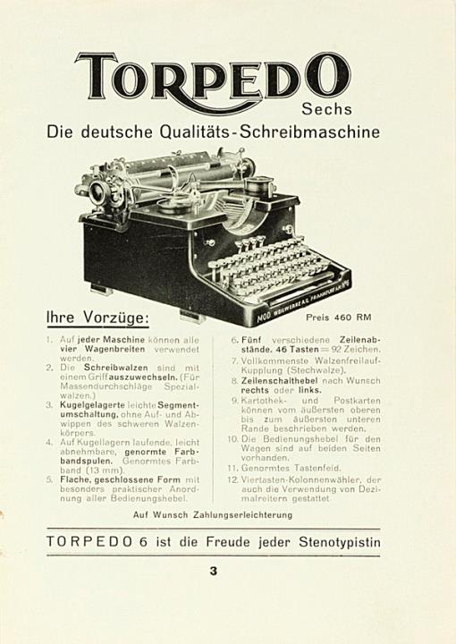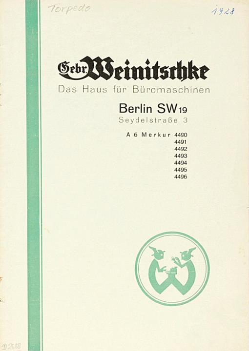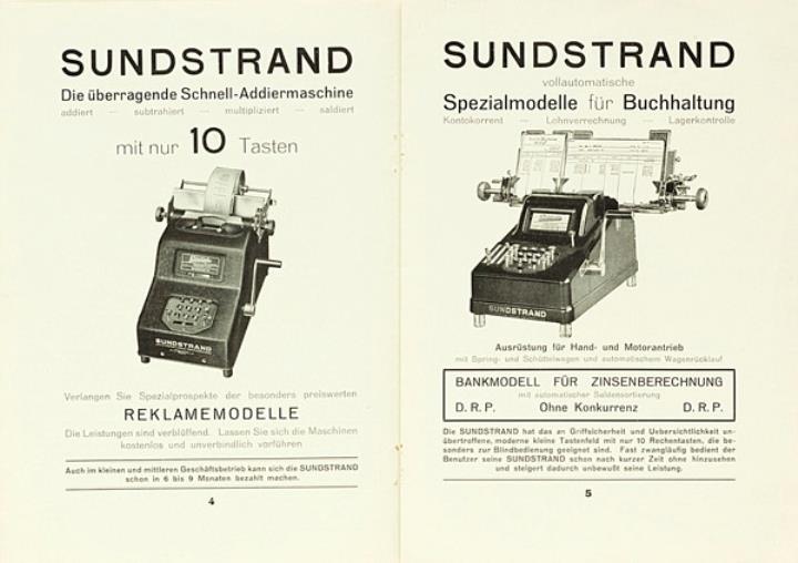 Prospekt für Schreibmaschine Torpedo und Rechenmaschinen Sundstrand Nr. 271.9.28 Datum handschriftlich vermerkt