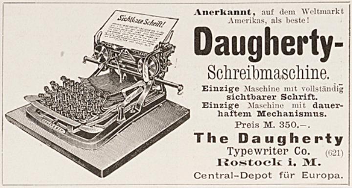 Werbeanzeige für Schreibmaschine Daugherty monochrom