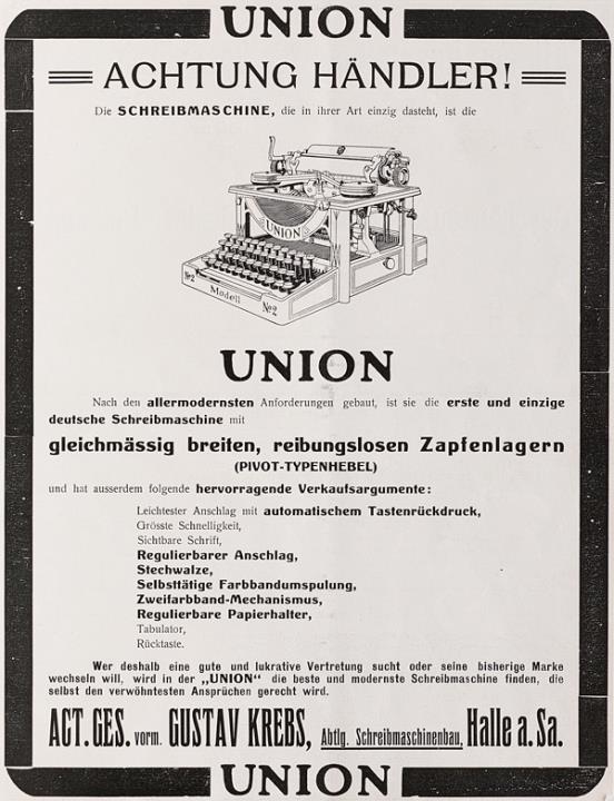 Werbeanzeige für Schreibmaschine Union (DEA) monochrom