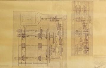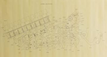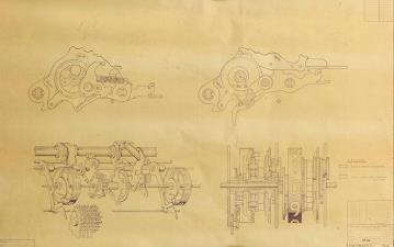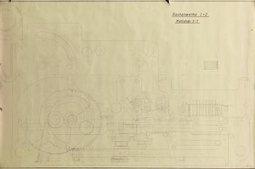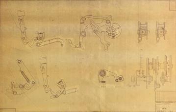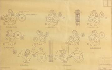 großformatige technische Zeichnung der Multiplikationseinrichtung einer nicht spezifizierten Rechenmaschine (möglicherweise Monroe)