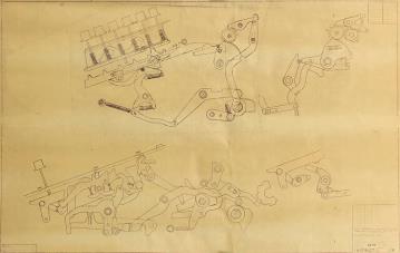 kopierte technische Detailzeichnung zu Handschaltungsmechanismus (manual shift keys) der Rechenmaschine Marchant Schriftfeld: Instruct. Zeichnungsnr. 124, datiert 9.21.62