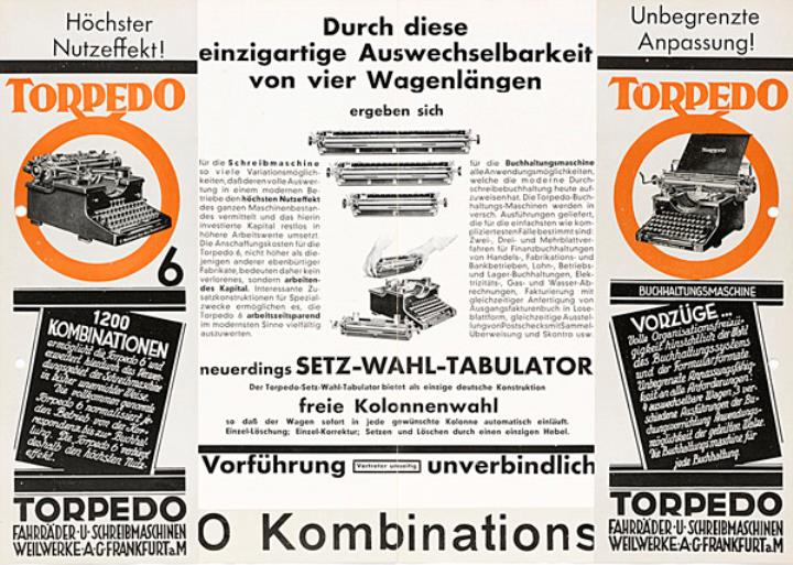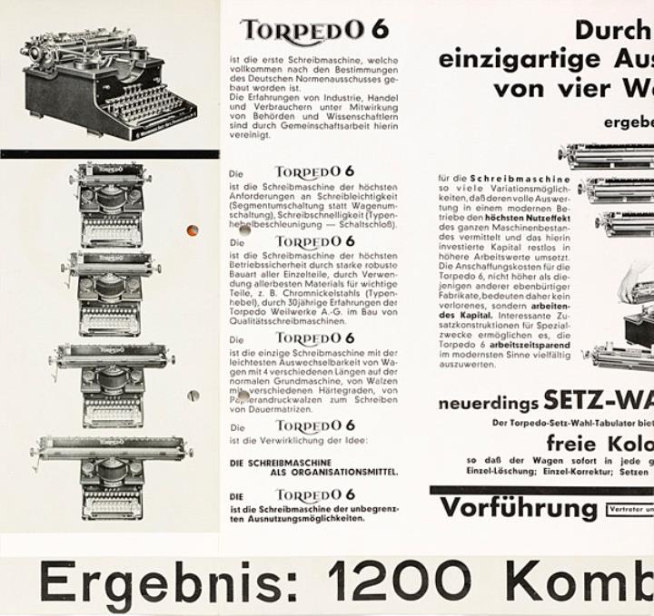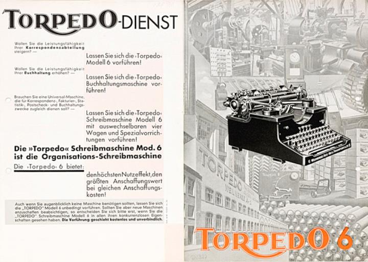 Faltprospekt für Schreibmaschine Torpedo 6 Nr. 10059.VI.30
