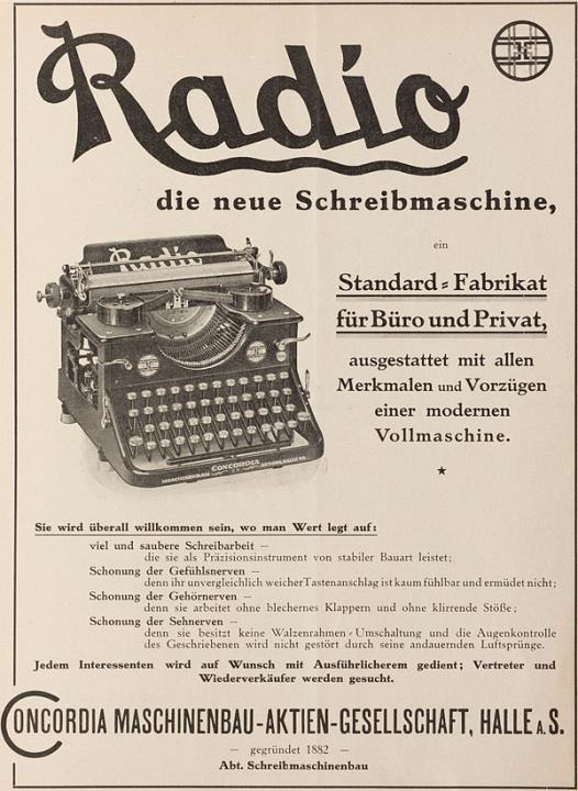 Werbeanzeige für Schreibmaschine Radio monochrom