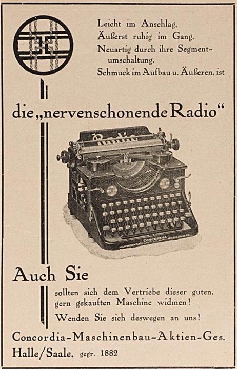 Werbeanzeige für Schreibmaschine Radio monochrom