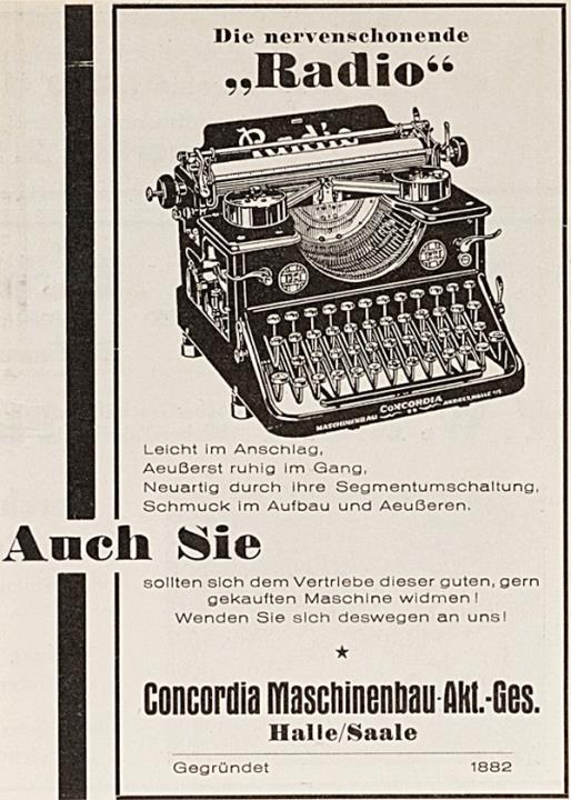 Werbeanzeige für Schreibmaschine Radio monochrom