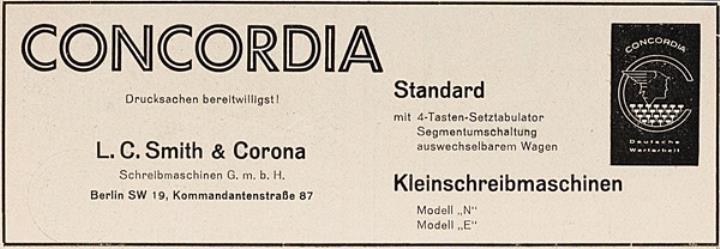 Werbeanzeige für Schreibmaschinen Concordia monochrom