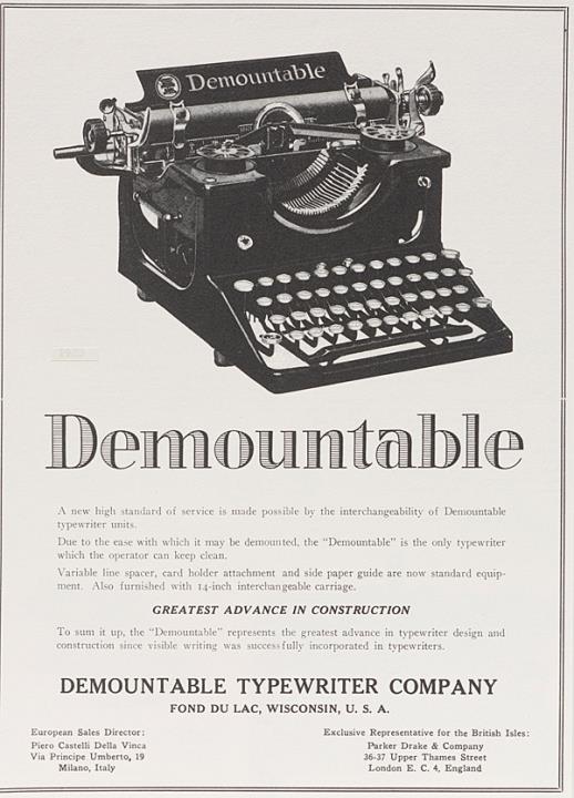 Werbeanzeige für Schreibmaschine Demountable monochrom