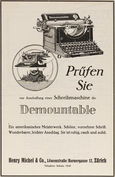 Werbeanzeige für Schreibmaschine Demountable monochrom