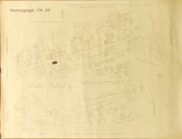großformatige technische Detailzeichnung zu Rechenaggregat einer nicht spezifizierten Rechenmaschine (womöglich Walther) datiert 19.4.61 Papier gewebeverstärkt