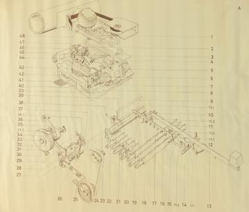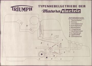 technische Detailzeichnung zu Typenhebelgetriebe der Schreibmaschine Triumph Matura electric