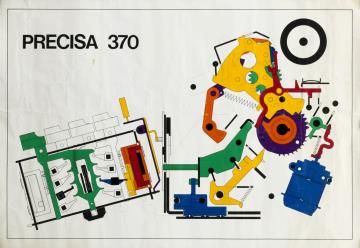 großformatige technische Detailzeichnung, Längsschnitt durch Rechenmaschine (Hermes) Precisa 370 Papier gewebeverstärkt