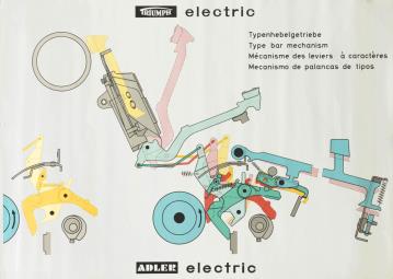 großformatige technische Detailzeichnung zu Typenhebelgetriebe der Schreibmaschine Triumph Matura electric