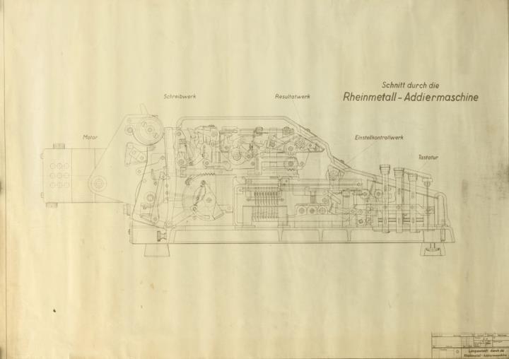 Schnitt durch die Rheinmetall-Addiermaschine