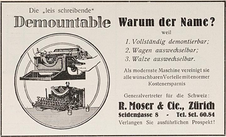 Werbeanzeige für Schreibmaschine Demountable monochrom