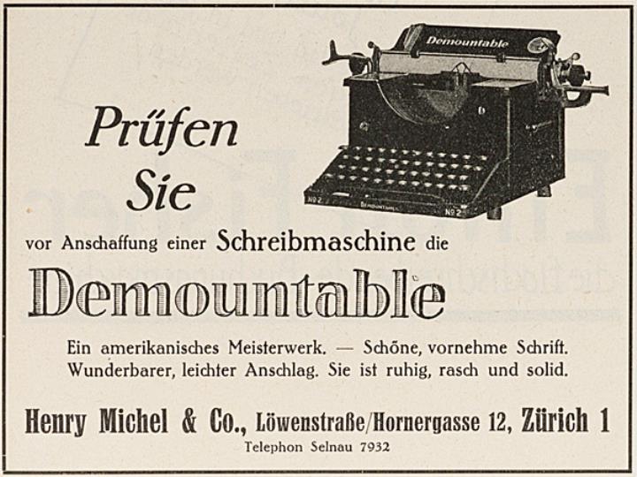 Werbeanzeige für Schreibmaschine Demountable monochrom