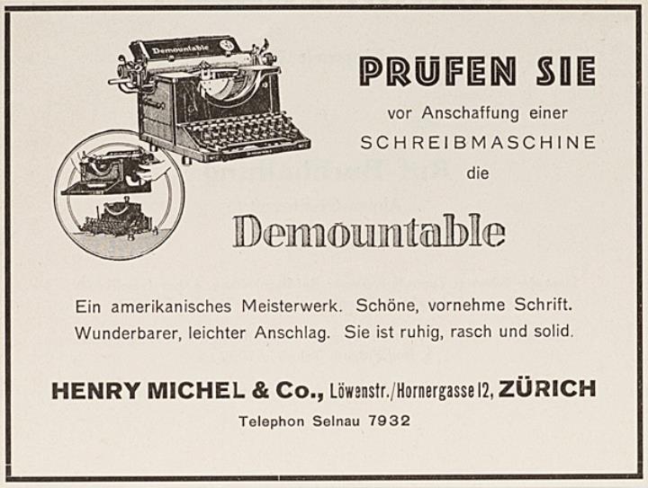 Werbeanzeige für Schreibmaschine Demountable monochrom