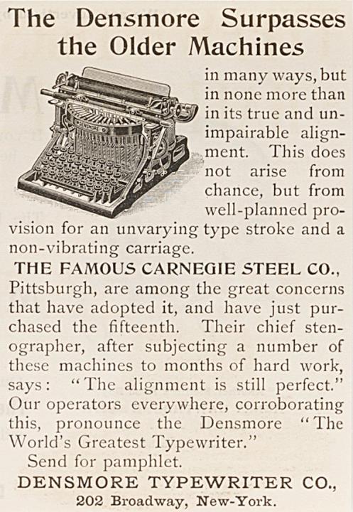 Werbeanzeige für Schreibmaschine Densmore monochrom