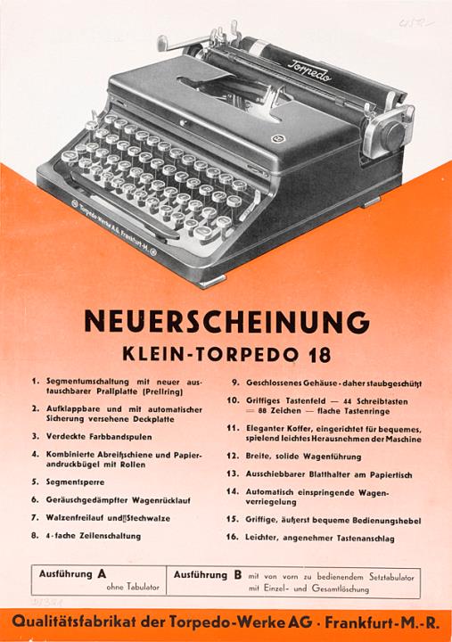 Next to literature on the history of technology, of the typewriter and the office, the Archive holds patent letters, textbooks and instruction manuals as well as historical postcards, letters, photographs and various kinds of advertising (leaflets and brochures, advertising stamps, newspaper ads, posters and signs, promotional gifts).