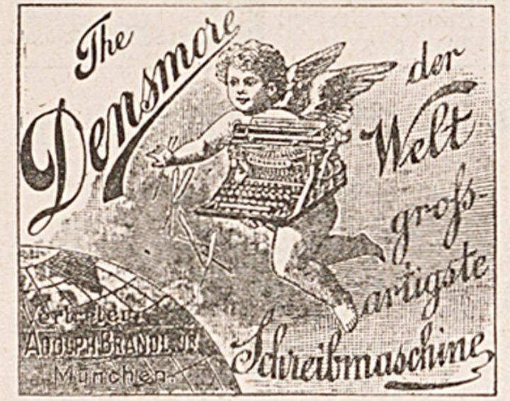 Werbeanzeige für Schreibmaschine Densmore monochrom