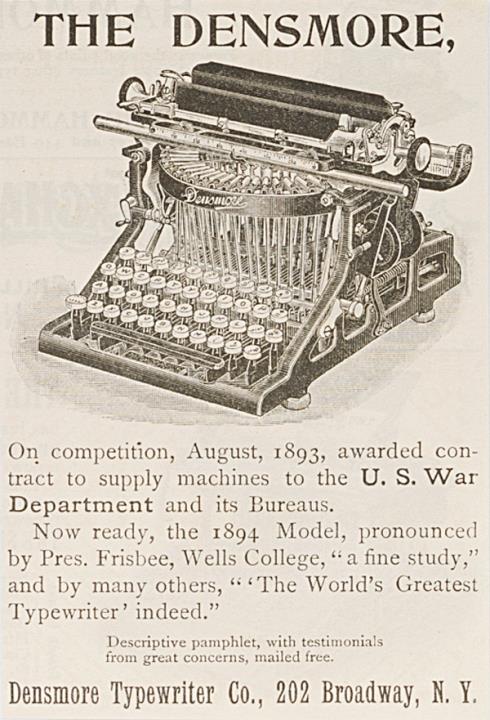 Werbeanzeige für Schreibmaschine Densmore monochrom
