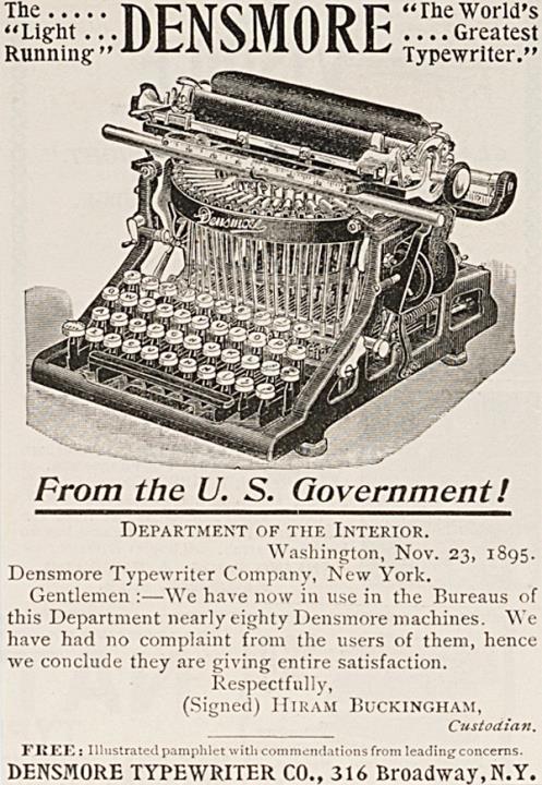 Werbeanzeige für Schreibmaschine Densmore monochrom