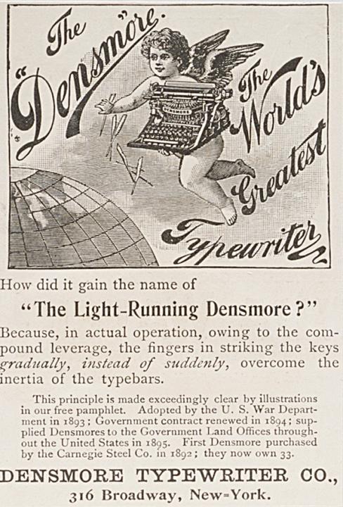 Werbeanzeige für Schreibmaschine Densmore monochrom