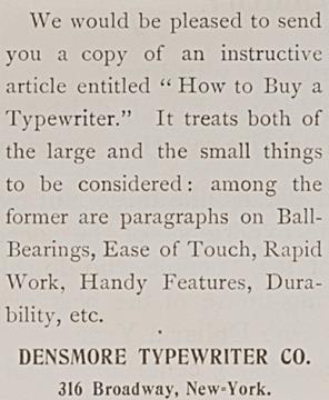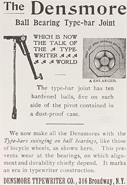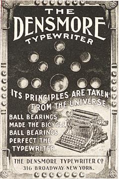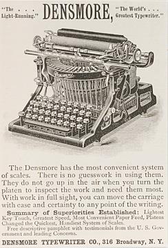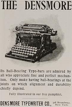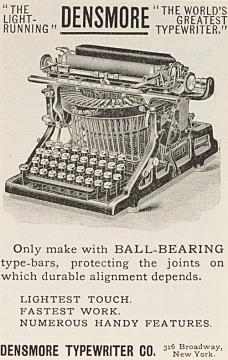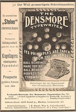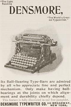 Werbeanzeige für Schreibmaschine Densmore mit Typenhebel-Kugellager monochrom