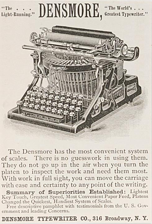 Werbeanzeige für Schreibmaschine Densmore monochrom