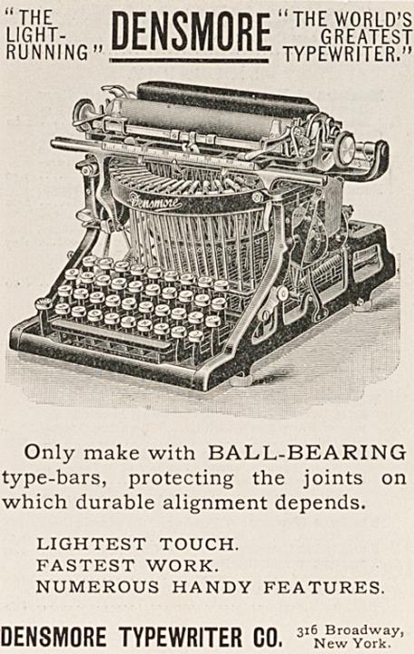 Werbeanzeige für Schreibmaschine Densmore monochrom