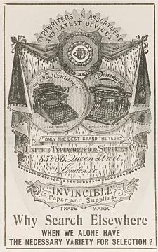 Werbeanzeige der Schreibmaschinenhandlung United Typewriter & Supplies Co. London monochrom