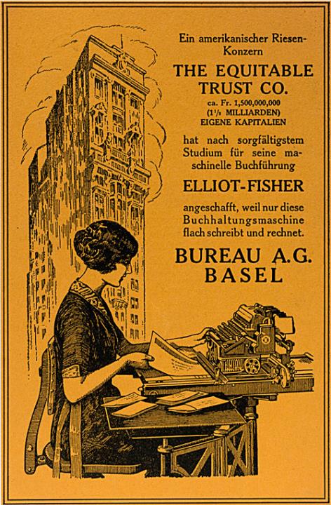Werbeanzeige für Buch-Schreibmaschine Elliott-Fisher monochrom