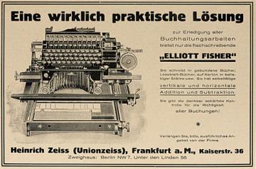 Werbeartikel für Buch-Schreibmaschine Elliott-Fisher monochrom