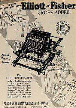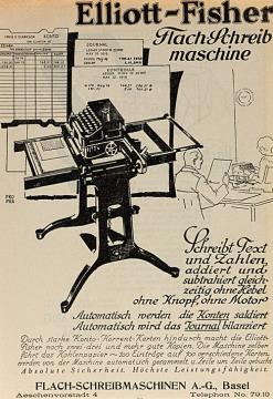 Elliott-Fisher Die Maschinen mit der flachen Schreib-Platte